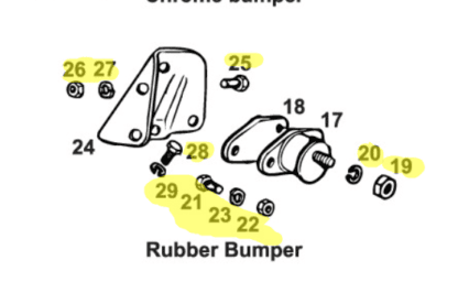 Bouten en moeren kit voor bevestiging motorsteunen MGB Rubberbumper